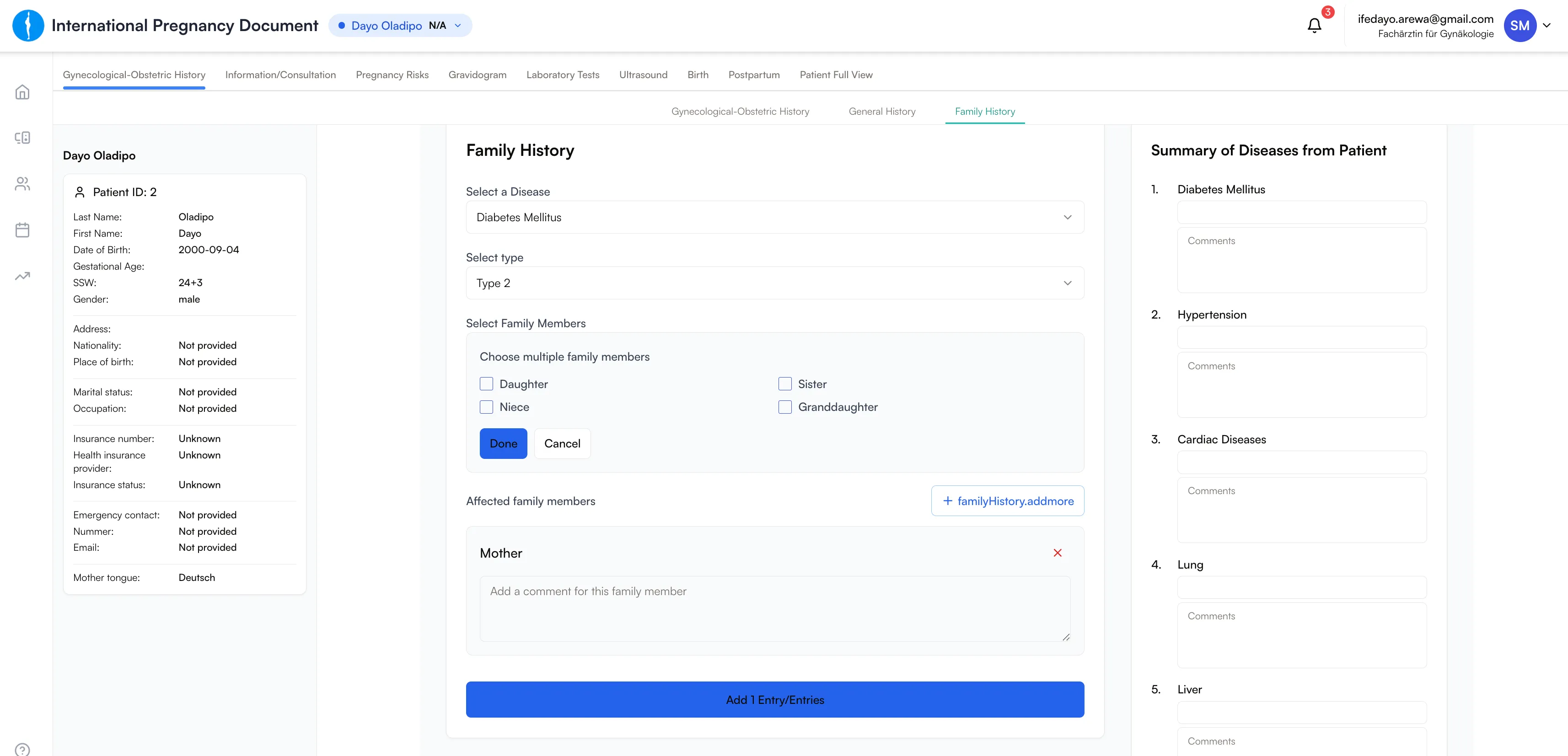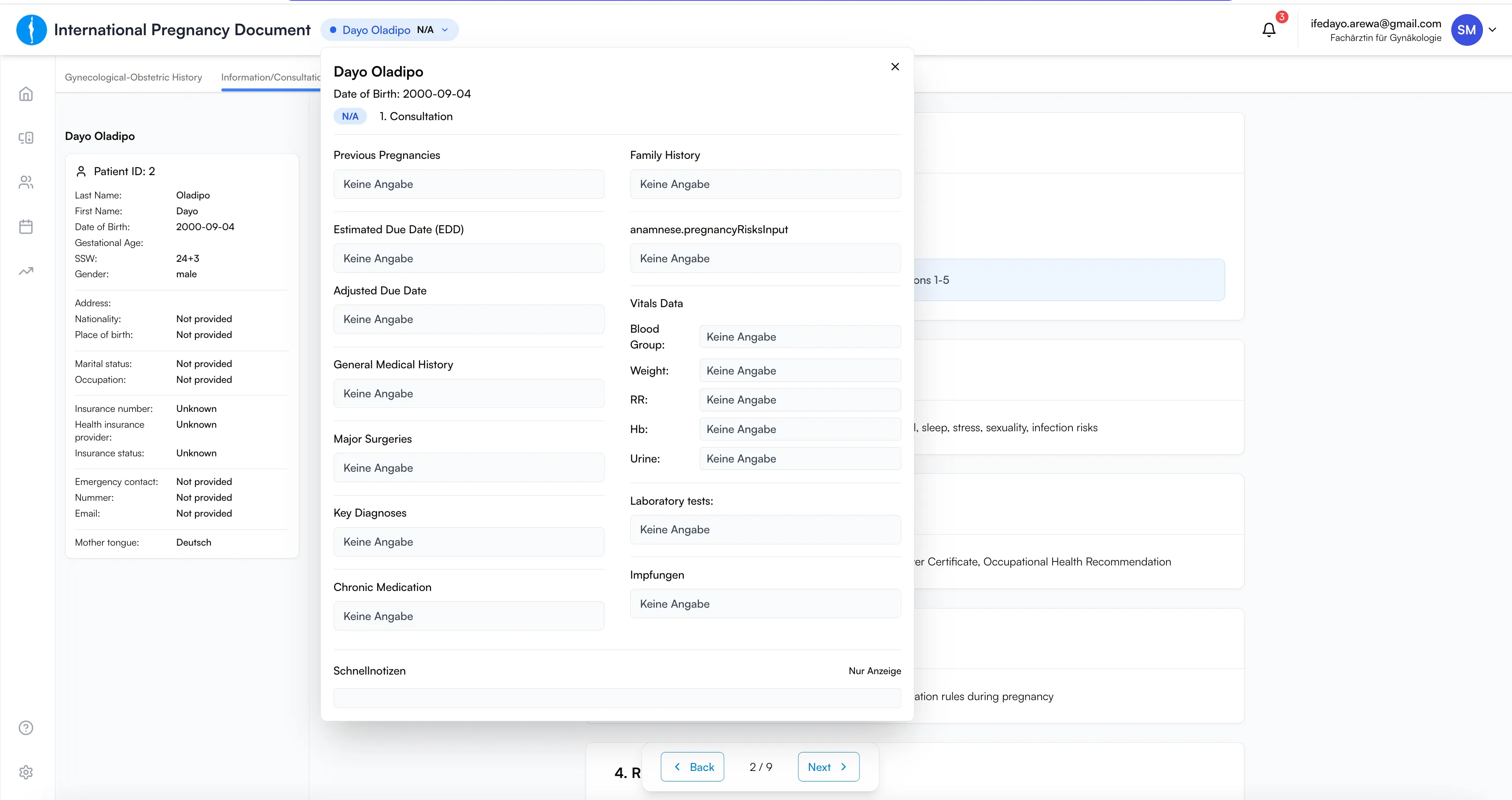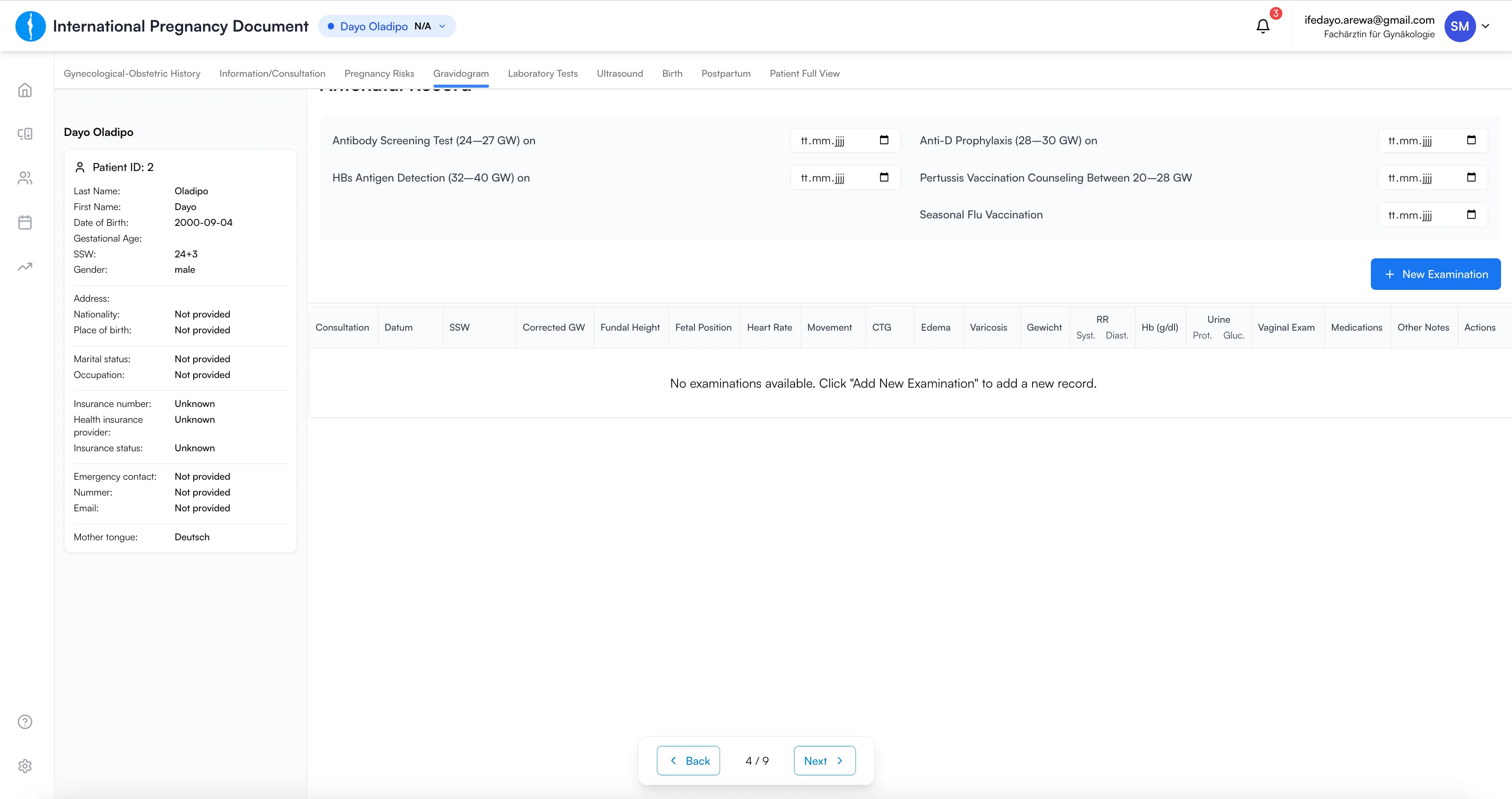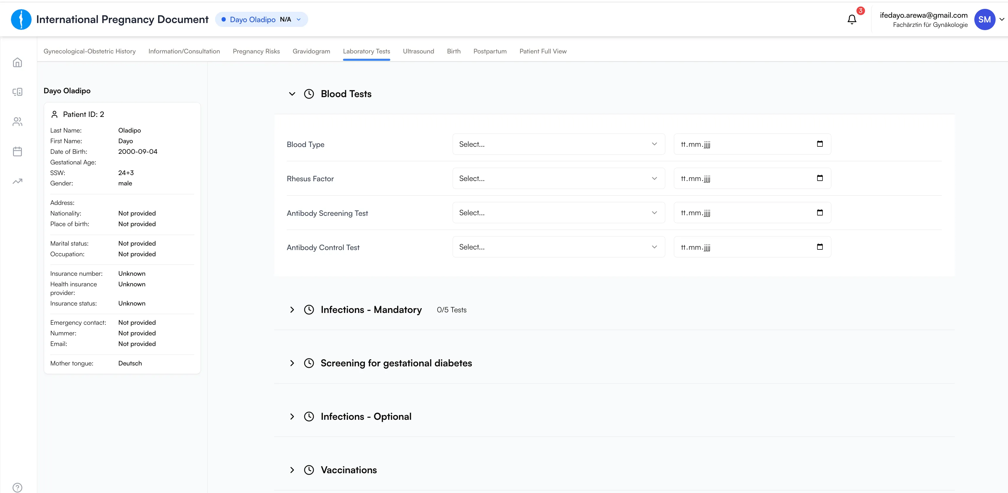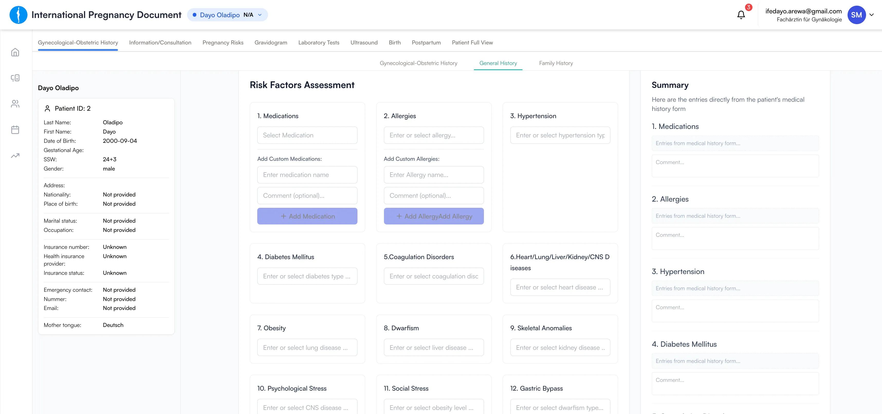 From recording vital signs, blood tests, and ultrasound results to documenting lifestyle factors and identifying potential risks, the IPD keeps all essential information in one place. Its clear timelines, detailed gravidas charts, and accessible summaries allow doctors and patients to collaborate more effectively, ensuring that care decisions are based on accurate, up-to-date information. By providing clarity, organization, and insight, the IPD supports a safer, more informed, and well-coordinated pregnancy journey.